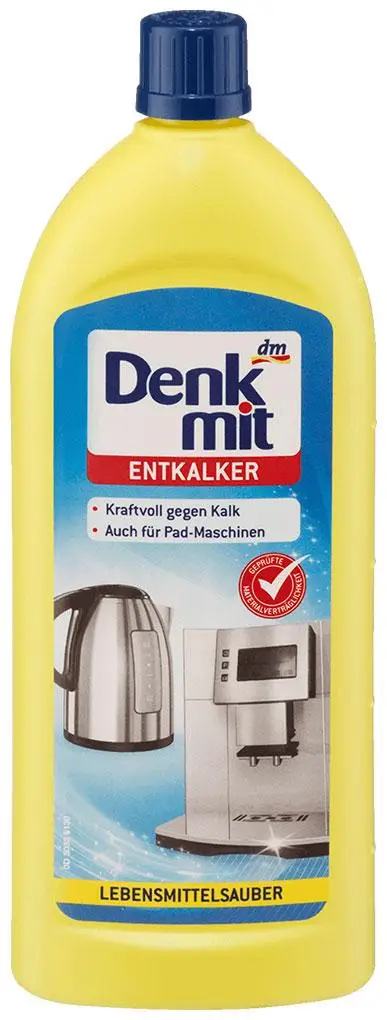 Denk mit Entkalker універсальний засіб від накипу. Засіб для видалення накипу в кавоварках, електричних чайників. До складу входить лимонна кислота, тому навіть сильний вапняний наліт буде віддалений ґрунтовно й обережно. Продовжує життєвий цикл побутової техніки.