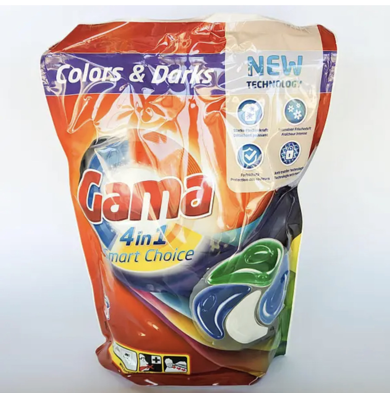 Гелеві капсули для прання Кольорових та Чорних речей Gama Colours&Dark 4in1 Smart choice Гама Розумний вибір 60шт Gama Colors and Darks гелеві капсули для прання темних і кольорових речей 4в1, 60 шт