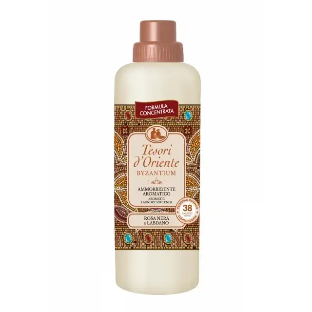 Парфумований кондиціонер-ополіскувач для білизни Tesori dOriente Buzantium (Візантія) 760 мл Парфумований кондиціонер-ополіскувач для білизни Tesori dOriente Buzantium (Візантія) 760 мл. Манливі та ексклюзивні аромати від Tesori dOriente нарешті огорнуть ваші найцінніші одяг і постільну білизну. Есенція Чорної троянди, у своїй найрідкіснішій і загадковій формі, підкреслена теплими нотами Лабдануму, дарує вашому пранню інтенсивний, заспокійливий та чарівний аромат. Його кремова формула, збагачена мікрокульками та без барвників, розслаблює тканини та полегшує процес прасування.