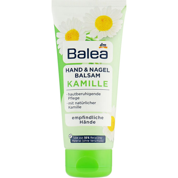 Крем-бальзам для рук і нігтів Balea Kamille зволожує й захищає шкіру рук. Активні речовини, як-от вітамін Е, рослинний гліцерин і провітамін В5 допомагають запобігти лущенню шкіри. Balea Kamille з цінними активними речовинами ромашки.