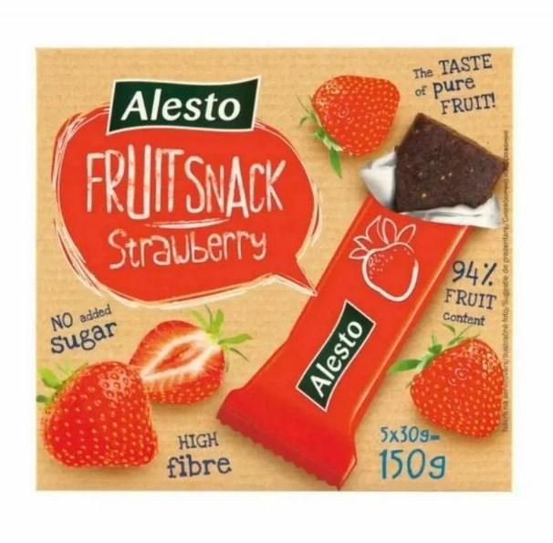 Перегляд Товару: Батончики фруктові Без цукру Alesto Fruit Snack No sugar Strawberry снеки Полуниця 5шт 150г