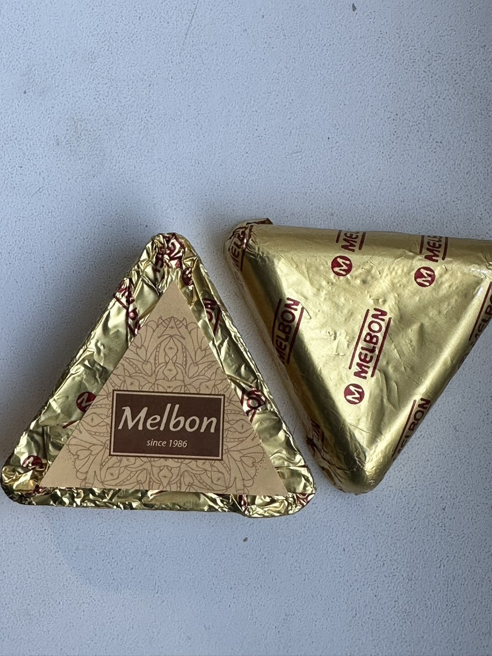 Перегляд Товару: Цукерка Грецький шоколад Трикутник Melbon Chocolate Triangle Мелбон молочний шоколад з праліне в Фользі 25г