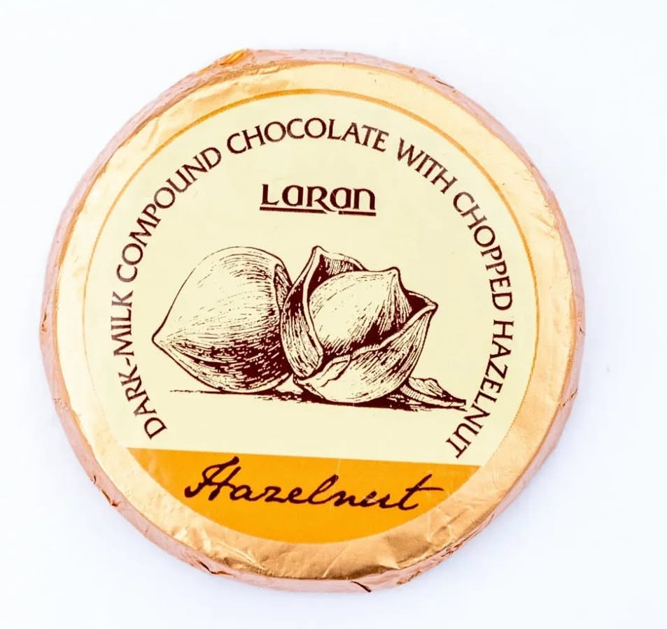 Перегляд Товару: Цукерка шоколадна Медальон Laran Dark Milk Compound Chocolate Chopped Hazelnut Ларан темномолочний шоколад з Фундуком в Фользі 20г