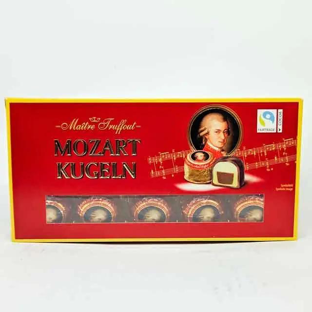 Перегляд Товару: Цукерки шарики Maitre Truffout Mozart Kugeln Майстер Труфо з молочного шоколаду з горіховим праліне та марципаном Коробка 200г