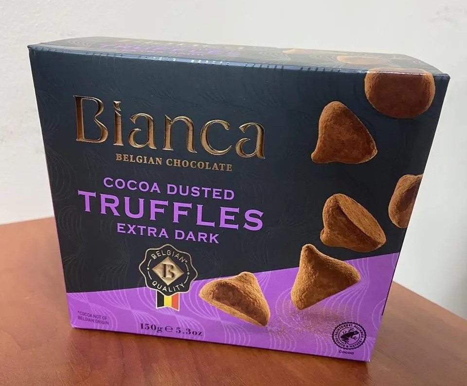 Перегляд Товару: Цукерки трюфель Бельгійській шоколад Bianca Belgian chocolate Cocoa Dusted Truffles Extra dark Бьянка Екстра чорний 12шт 150г