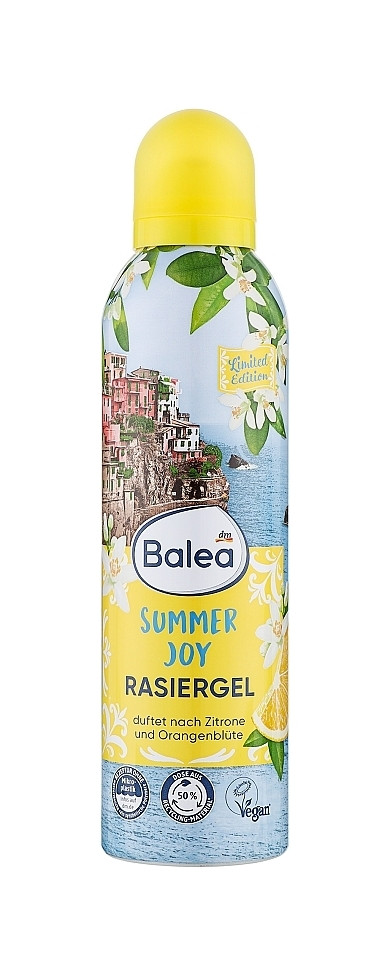 Перегляд Товару: Гель для гоління Жіноча аерозоль Balea Summer Joy Rasiergel Lemon&Orange Балеа Літня Розвага квіти Лемон та Апельсину Балон 200мл