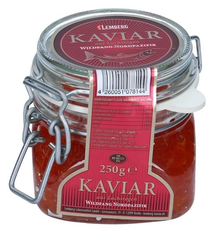 Перегляд Товару: Ікра червона Лосося Lemberg Kaviar WildFang NordPazific aus Lachsrogen Лемберг з північної Тихоокеанської частини СклоБанка 250г
