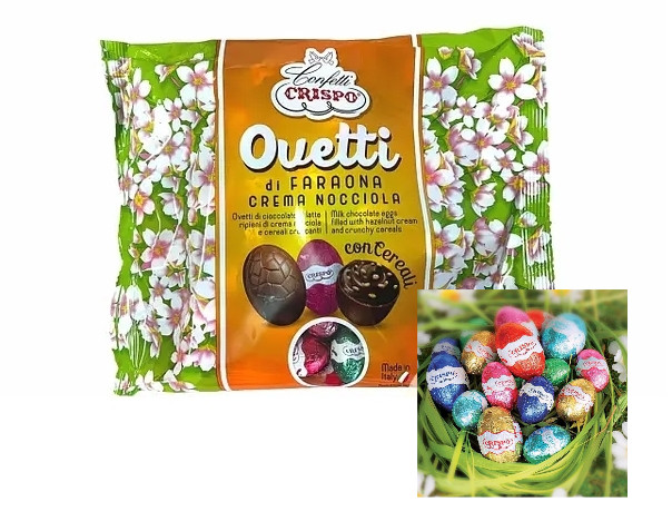 Перегляд Товару: Яйця Шоколадні Великодні Confetti Crispo Ovetti di Faraona crema Nocciola Кріспо Оветті Пасхальні в фользі Асорті Пакет 30шт 850г