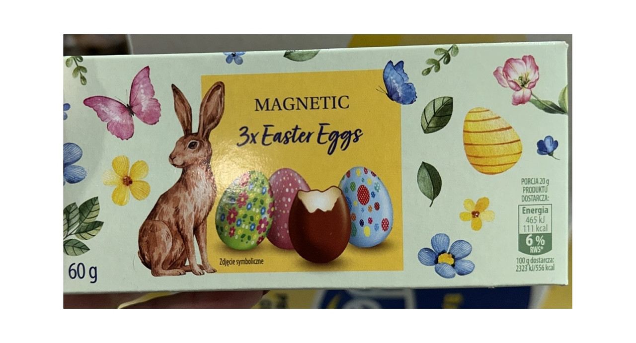 Перегляд Товару: Яйця Шоколадні Великодні Magnetic Easter Eggs 3x Chocolate Магнетік Пасхальні молочний шоколад з вершковим кремом 3шт 60г