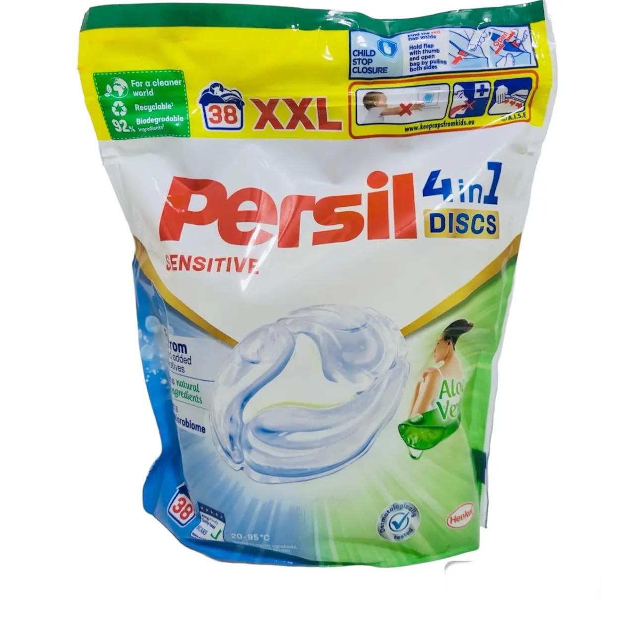 Перегляд Товару: Капсули для прання дитячих речей Persil Sensitive 4в1 диски з алое вера 38шт