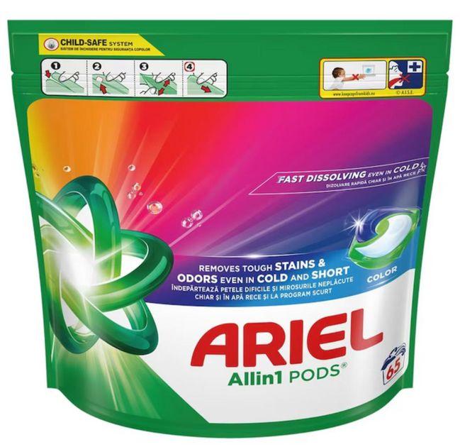 Перегляд Товару: Капсули для прання Кольорових речей Ariel Pods All-in-1 Fast Dissolving Stain Remove Color Арієль швидкорозчинні Колор 65шт