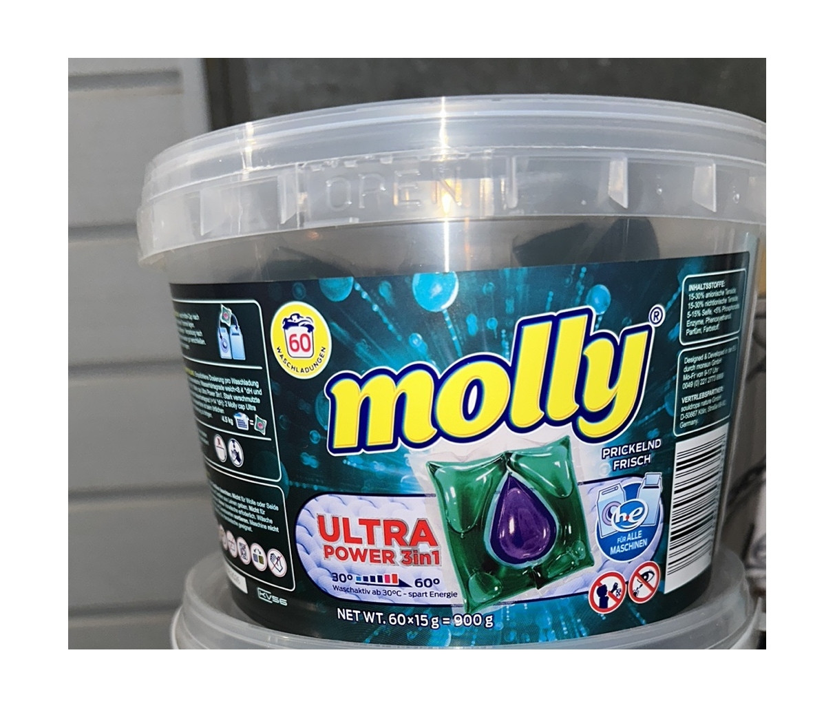 Перегляд Товару: Капсули для прання Універсальні Molly Ultra Power Universal Pods 3in1 Washing Capsules Моллі 3-компонентні Ультра Сила Відро 60шт