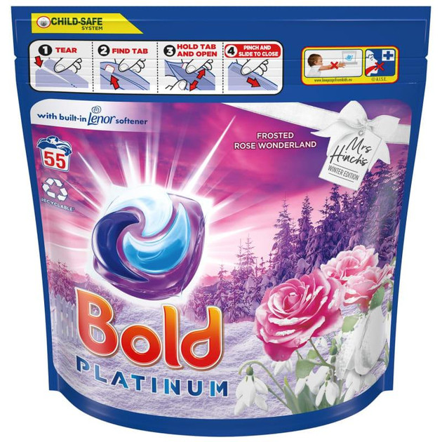 Перегляд Товару: Капсули для прання універсальні Procter&Gamble Bold Platinum 4в1 Frosted Rose Wonderland з помякшувачем Lenor 55шт