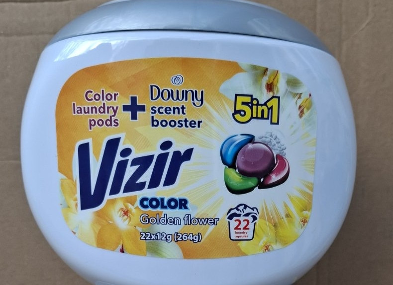Перегляд Товару: Капсули для прання з Downy підсилення Аромату Колор Vizir Color Laundry pods Downy scent booster Golden Flower Візір 5в1 Бокс 22шт
