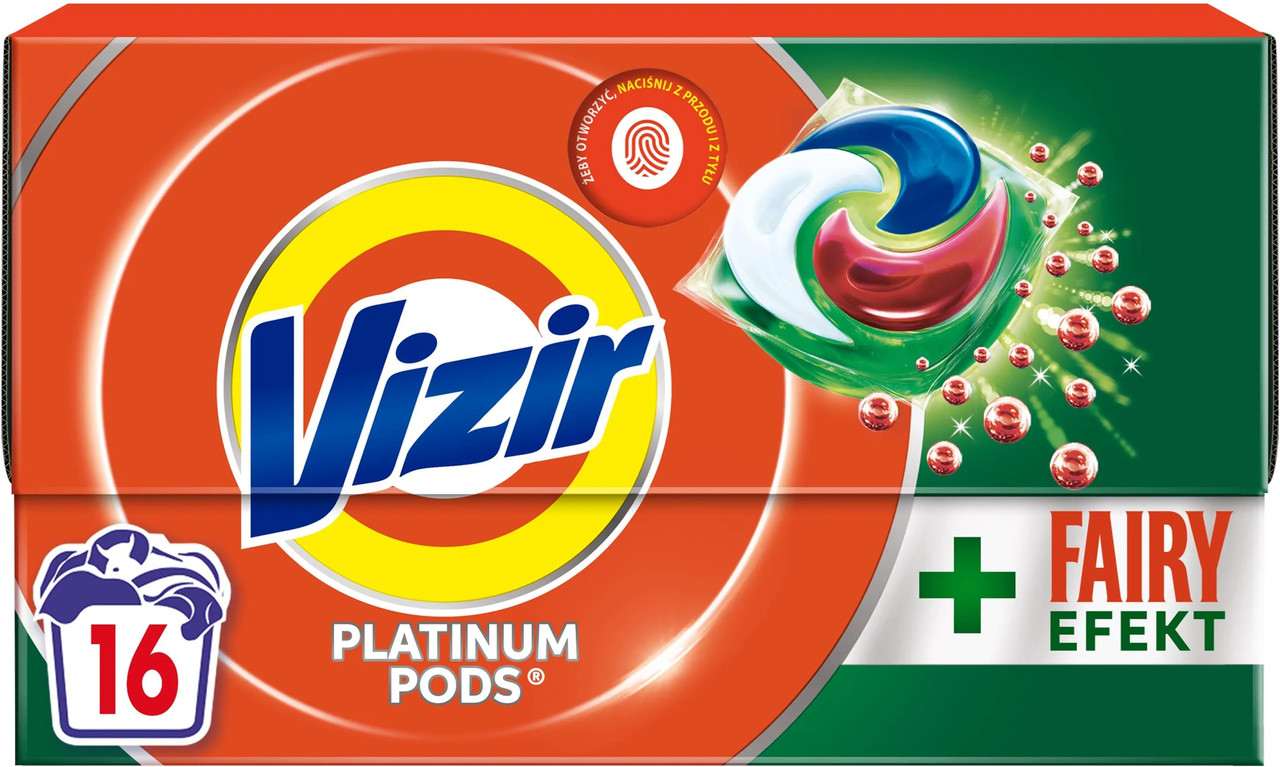 Перегляд Товару: Капсули для прання з Fairy Ефектом Універсальні Vizir Platinum pods Fairy Effect 3в1 Візір Платінум трьохкомпонентні 16шт
