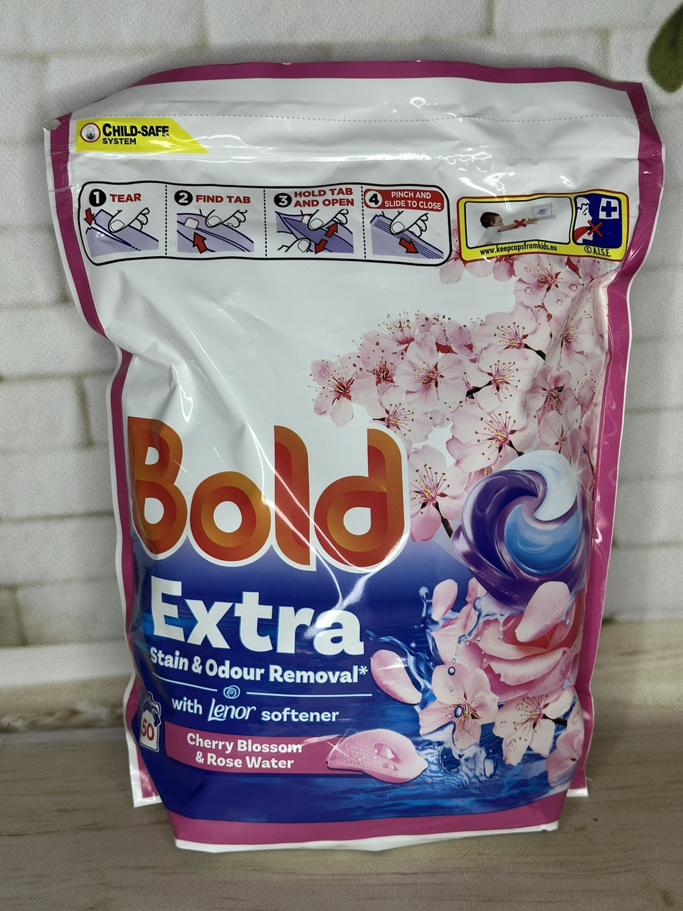 Перегляд Товару: Капсули для прання з Ленор Універсальні Bold Extra Stain&Odor Removal Lenor Cherry Blossom&Rose 4in1 Болд Квіти вишні Мегапак 50шт