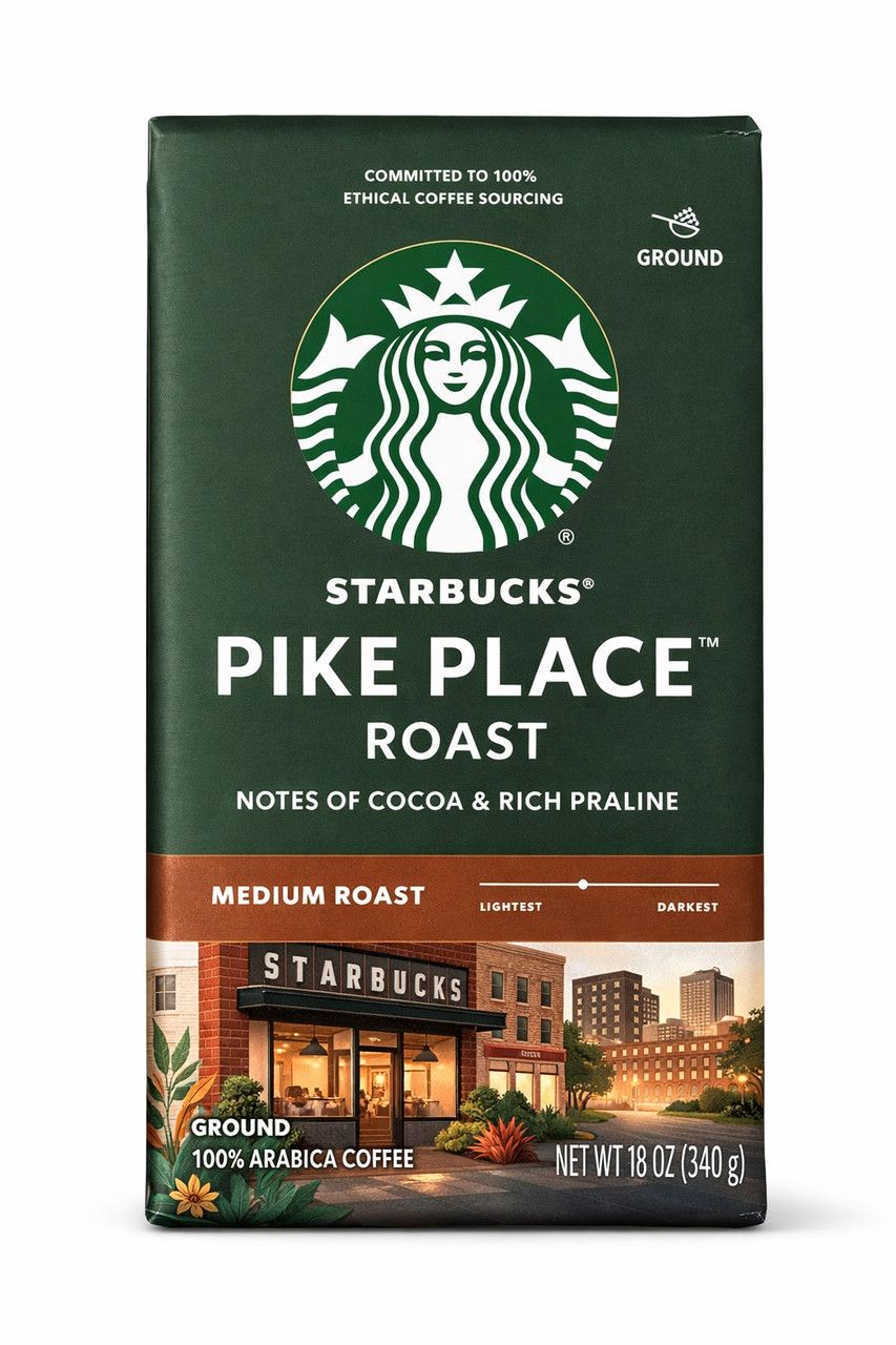 Перегляд Товару: Кава мелена Starbucks Pike Place Roast 100% Arabica Medium Старбакс Пайк-Плейс арабіка Середня обжарка Нотки Какао пакет 510г