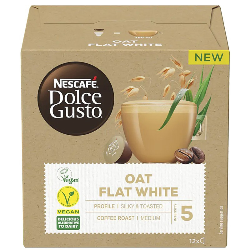 Перегляд Товару: Кава мелена в Капсулах безлактозна Nescafe Dolce Gusto Oat Flat White Silky Toasted Арабіка Нескафе злаки Овес білий 12шт 400г