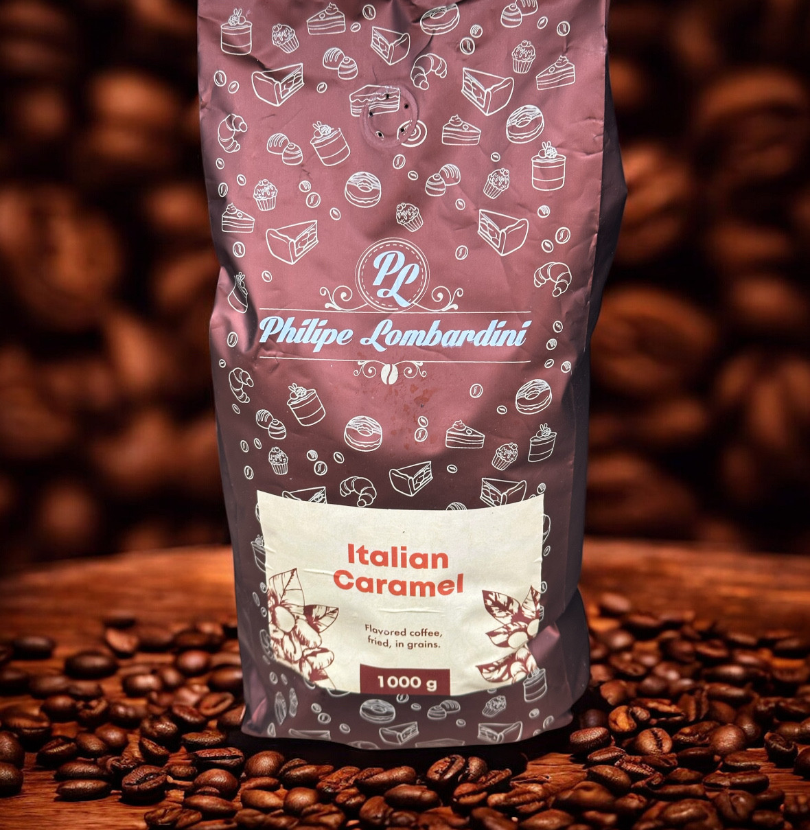 Перегляд Товару: Кава в зернах Philipe Lombardini Italian Caramel Філіп Ломбардіні з ароматом Італійська Карамель мікс робусти та арабіки 1000г