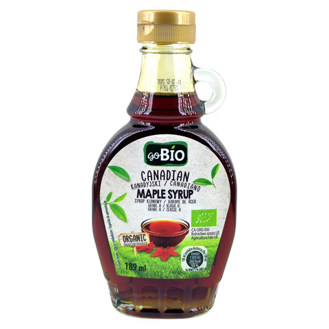 Перегляд Товару: Кленовий сироп Канадський goBio Canadian Maply Sirup Organic Grade A ГоуБіо Органік десертний міні фляжка з ручкою 189мл