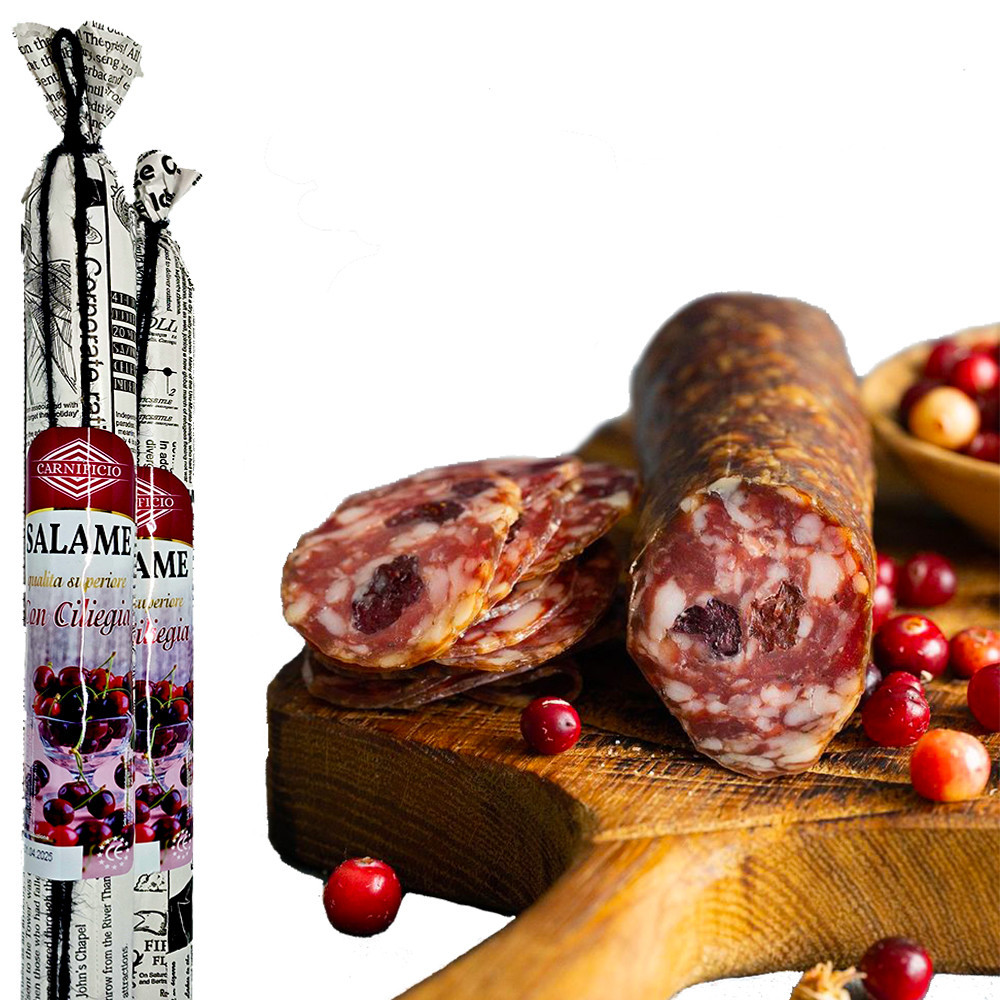 Перегляд Товару: Ковбаса сирокопчена Carnificio Salame сon Ciliegia Саламі Карніфіціо з Вишнею свинина в натуральній оболонці Палочка 280г