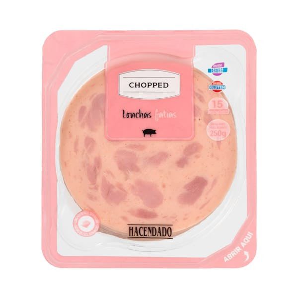 Перегляд Товару: Ковбаса варена з шинкою Слайси Chopped Hasendado Lonchas Gatias для Ланчу з свинини нарізана 15шт 250г