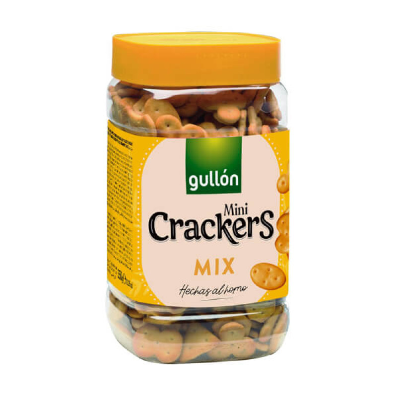 Перегляд Товару: Крекери міні Солоні Gullon mini Crackers Mix Hechos al Homo Гулон Мікс печива різної Форми Банка з кришкою 350г