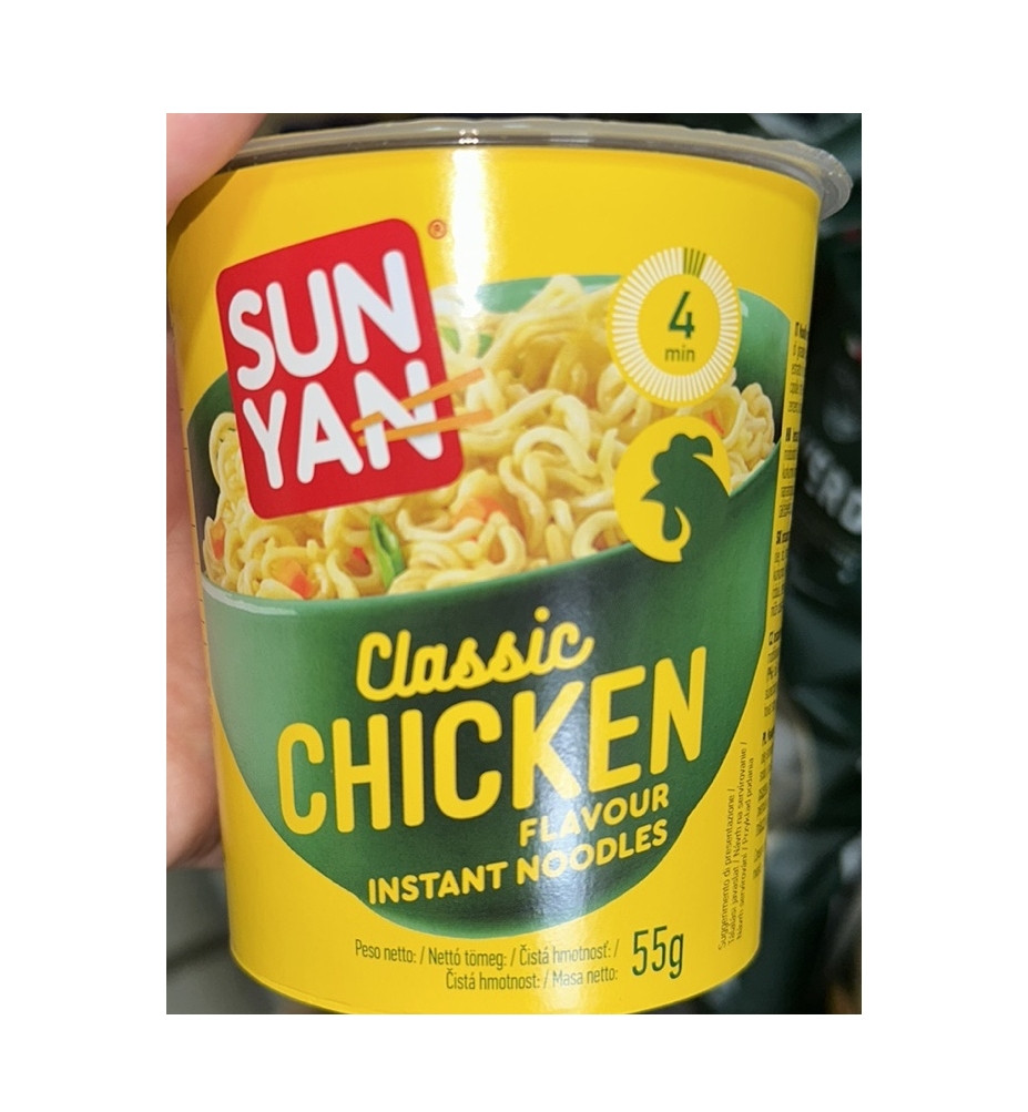 Перегляд Товару: Локшина для Рамену Швидкого приготування Sun Yan Classic Chicken instant Flavour noodles Суп з макаронами смак Курка Стакан 55г