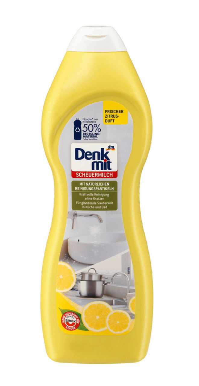 Перегляд Товару: Молочко піна Активна для очищення Поверхонь Denkmit Scheuermilch Reinigungs Lemon Денкміт з натуральними очисними частинками 750мл
