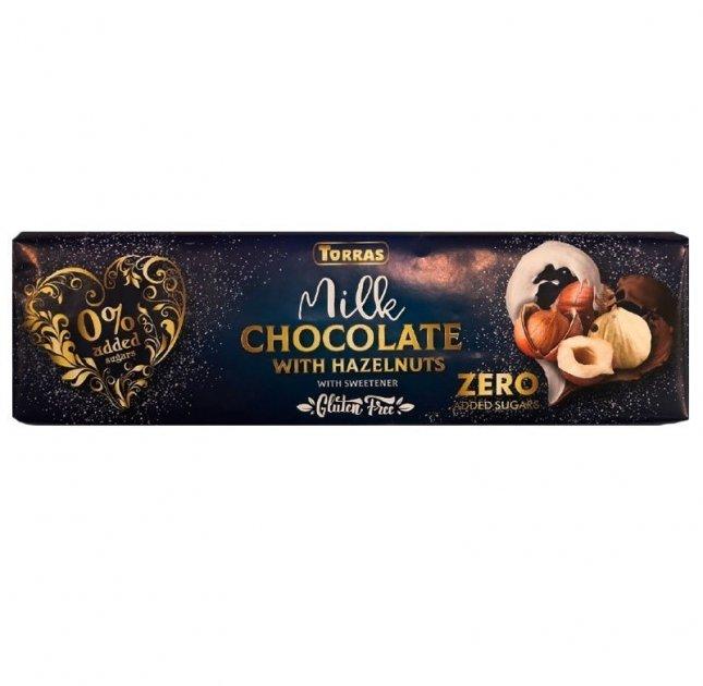 Молочний шоколад Torras zero з фундуком без цукру і глютена 300г