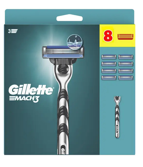 Перегляд Товару: Набір Бритва для гоління та Касети Чоловіча Gillette Mach3 Джілет станок Змащувальна змужка 3леза 8шт