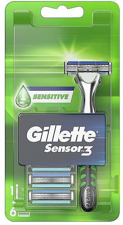 Перегляд Товару: Набір Бритва для гоління та Касети Чоловіча Gillette Sensor3 Sensitive Джілет Сенсітів Змащувальна змужка АлоеВера 3леза 6шт