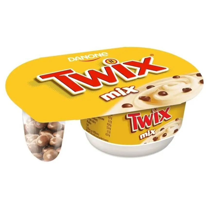 Перегляд Товару: Набір Йогурт та шоколадні Драже Danone Twix Mix Chocolate Данон Твікс молочний Мікс з карамельним кремом Стакан двохсекційний 120г