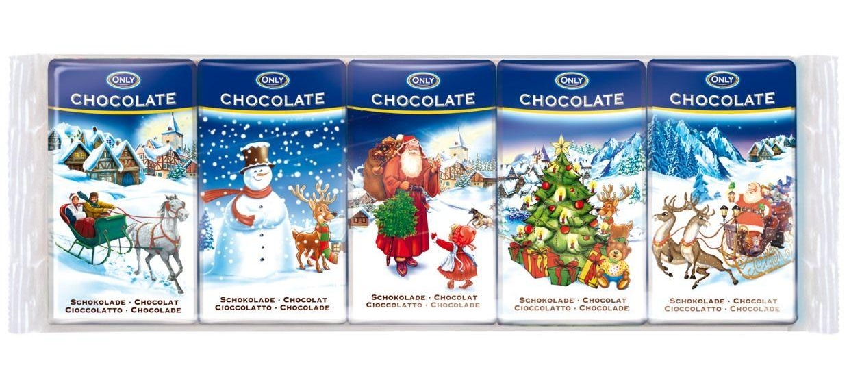 Перегляд Товару: Набір молочних мінішоколадок Новорічний Різдвяний Only mini Chocolates Святковий 5шт 75г