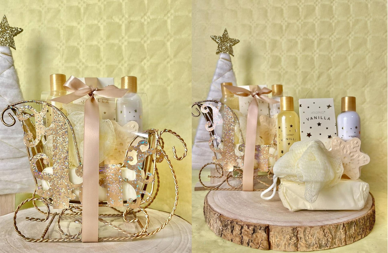 Перегляд Товару: Набір Новорічний Подарунок Косметика для ванни та процедур SPA 5в1 WonderNice Christmas Present металеві Різдвяні сані 505мл