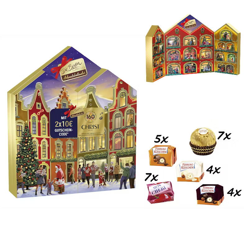 Перегляд Товару: Набір Подарунок 3D будинок Новорічний Адвент календар Ferrero Die Besten Adventskalender Haus Розкладний цукерки Праліне 250г