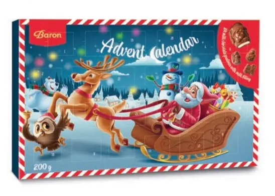 Перегляд Товару: Набір Подарунок Новорічний Адвент календар Baron Advent calendar Santa friends шоколадні фігурки Дитячий 200г