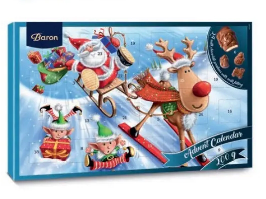 Перегляд Товару: Набір Подарунок Новорічний Адвент календар Baron Advent calendar Santa winter шоколадні фігурки Дитячий 200г