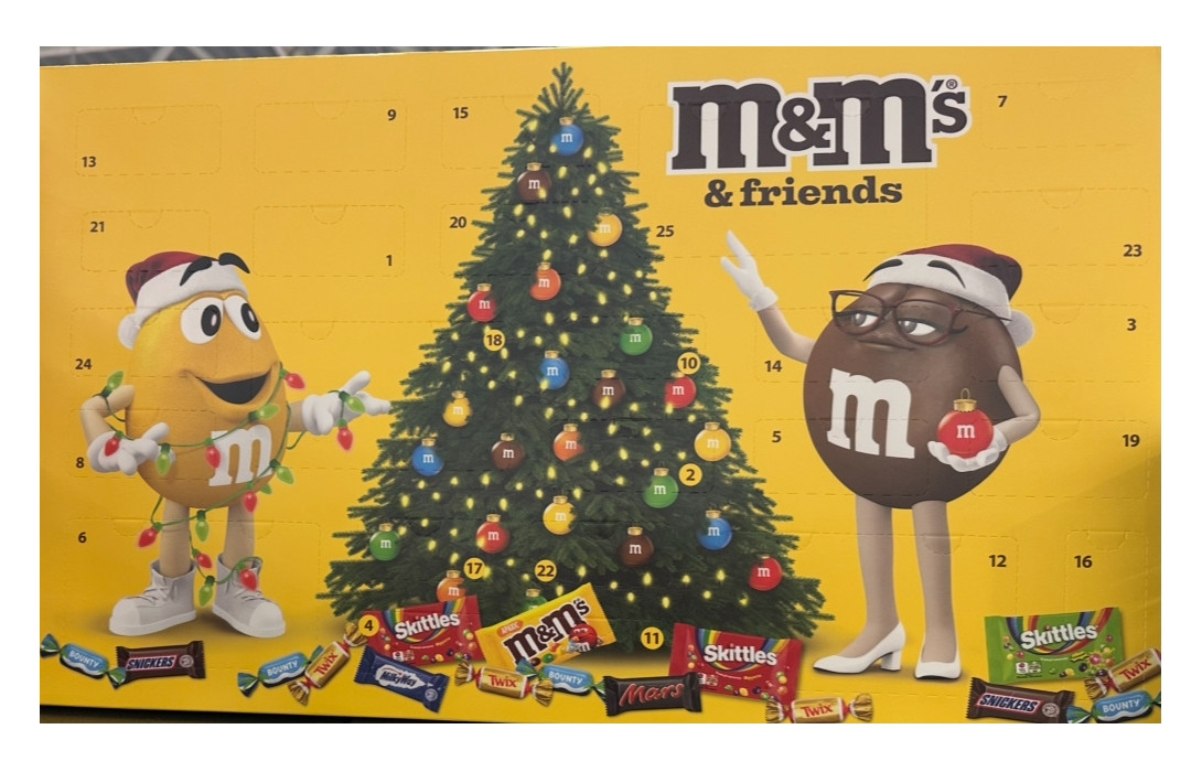 Перегляд Товару: Набір Подарунок різдвяний Адвент-календар M&Ms and Friends Advent Calendar ММс Набір солодощів 24 віконечка 463г