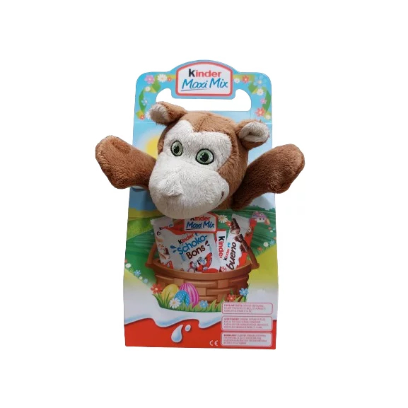Перегляд Товару: Набір Подарунок солодощі з мякою Іграшкою Kinder Maxi Mix Кіндер Дитячий мікс Мавпочка Бокс 133г