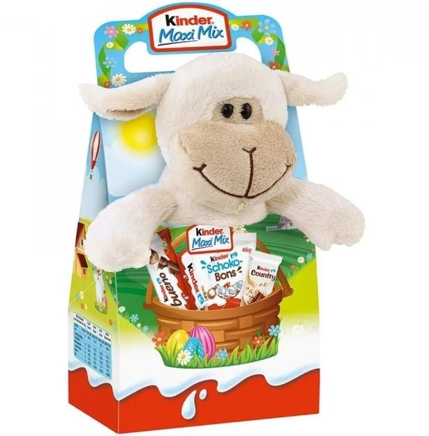 Перегляд Товару: Набір Солодощів з мякою Іграшкою Пасхальний Kinder Maxi Mix Sheep Кіндер максі Мікс цукерок та плюшева Овечка 133г