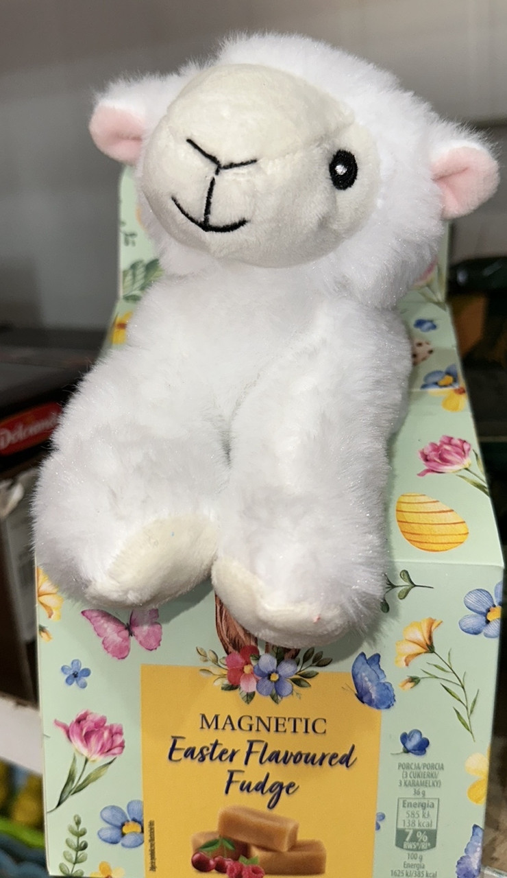 Перегляд Товару: Набір Великодній цукерки з Іграшкою Magnetic Easter Flavoured Fudge Sheep Магнетік фруктово карамельні Біла Овечка 90г