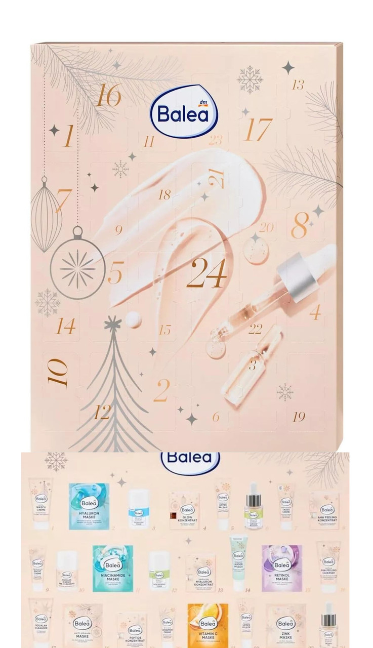 Перегляд Товару: Набір Жіночий адвент-календар доглядової Косметики для обличчя Подарунок Balea Face Adventskalender Балеа 24предмети 1200г
