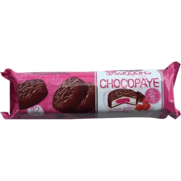 Перегляд Товару: Печиво бісквітне в шоколадній глазурі ChocoPaye Strawberry Pink Шокопей класичні з полуничним джемом та маршмеллоу 12шт 216г