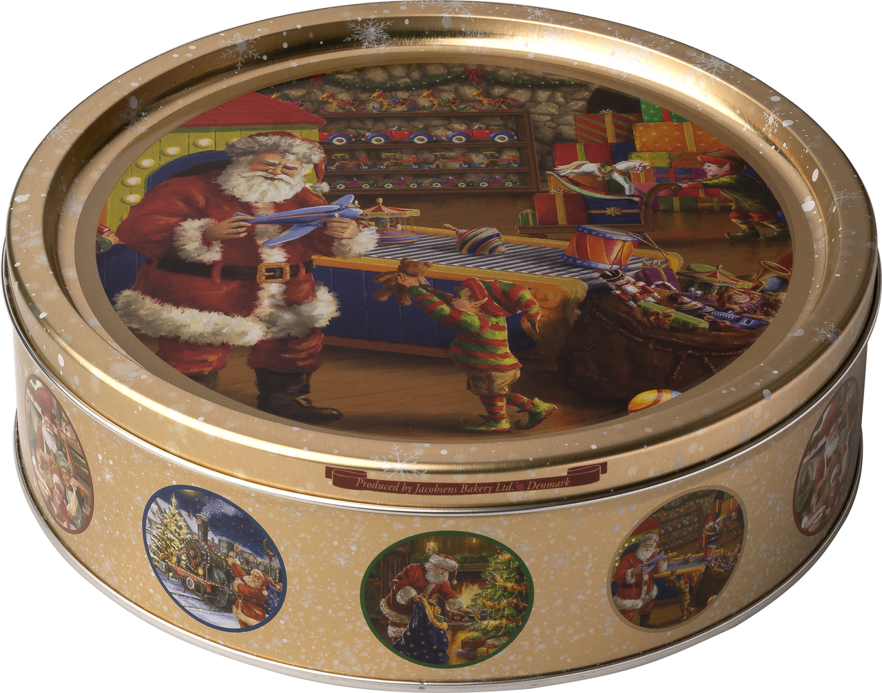 Перегляд Товару: Печиво вершкове Новорічне Cвяткове Jacobsens Bakery Delicious Danish Cookies Santa Play Elf Tree Санта гра з Ельфами Бокс 340г