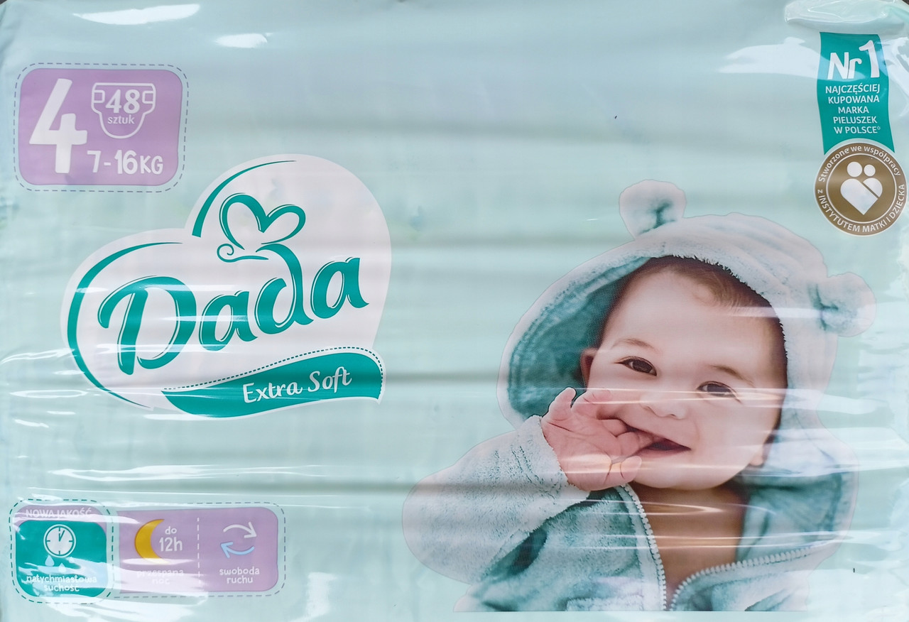 Перегляд Товару: Підгузники з манжетами Суперабсорбуючі DADA 4 Extra Soft Дада памперси вага від 7-16+кг Гіпоалергенні 48шт
