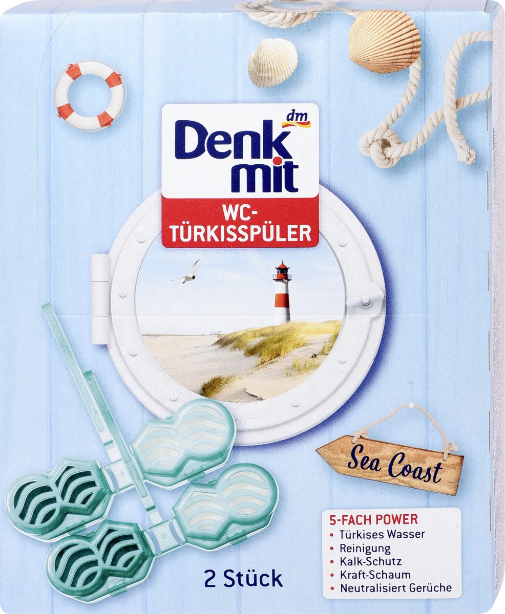 Перегляд Товару: Підвіска для унітазу з подвійним ароматом Denkmit Wc turkisspuler sea coast туалетний блок 2 шт 96г