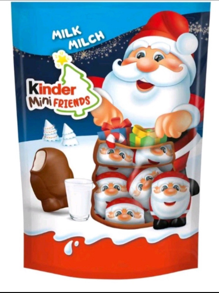Перегляд Товару: Подарунок Новорічний Цукерки з молочного шоколаду Kinder Chocolate Mini Friends Санта 18шт 122г