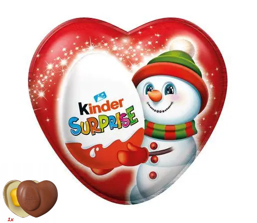 Перегляд Товару: Подарунок Різдвяний Сердечко з іграшкою Kinder Surprise Christmas Heart Сніговичок 53г