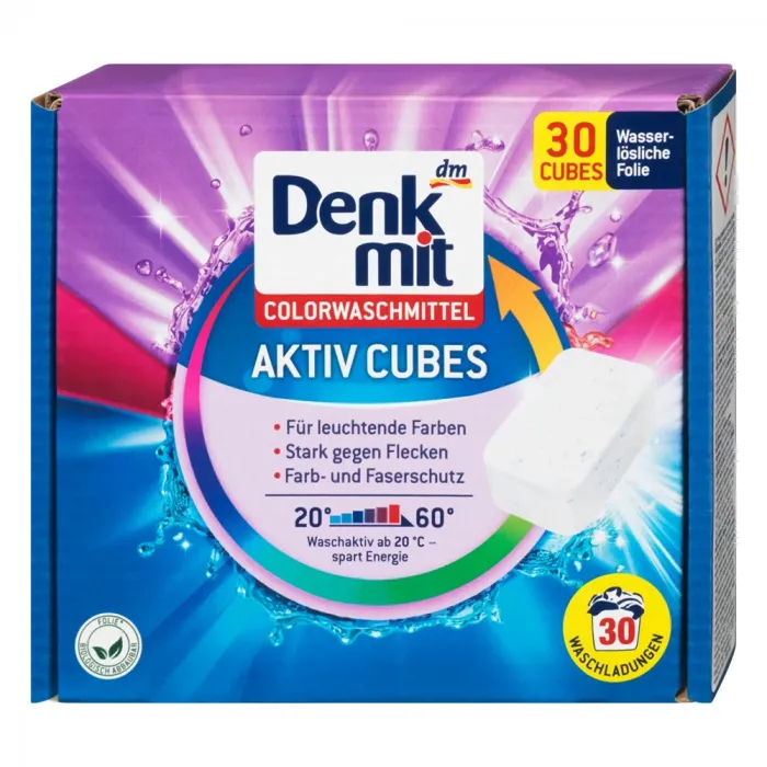 Перегляд Товару: Пресований порошок Denkmit для прання кольорових речей aktiv cubes color 30шт
